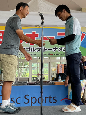 新たに始まった年間最優秀選手賞の表彰が先日の日本オープン閉会式の場を借りて行われました。受賞者には特性のメタルミニトロフィーが贈られました。また賞として次年度公式戦1試合分の参加費をJPDGAが負担します。