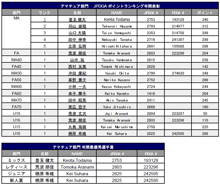 ■JPDGA ポイントランキングについてはこちら
