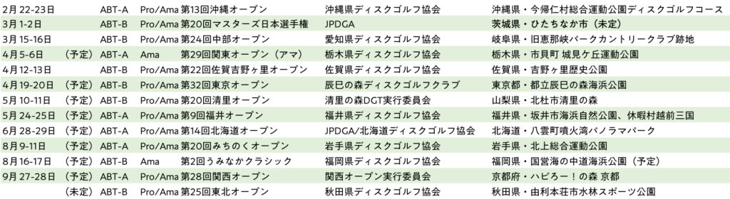 2025年の選抜大会は、JPDGA公式戦のA・B Tier大会(2Day / 個人戦)とします。